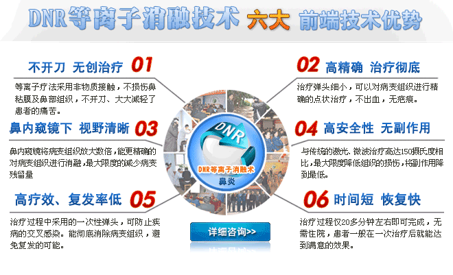 西安中大耳鼻喉医院的 “DNR等离子鼻炎系统” 全面融合了现代微创等离子消融技术、智能识别定位技术、鼻腔内受损组织重建技术,是治疗鼻部疾病较完美的微创疗法。