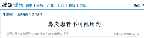 相关问卷数据显示,78%的受访者出现流鼻涕、鼻塞、打喷嚏等症状时选择自行服用药物。鼻炎类疾病症状与感冒类似,患者常常误将其当成感冒,凭自己对病情的判断或是之前的用药经验购药.一些鼻炎类疾病患者服用较多的药物大多数是广告宣传力度大的药物,忽略了根据自身病情选择药物的原则,而出现以下病症: